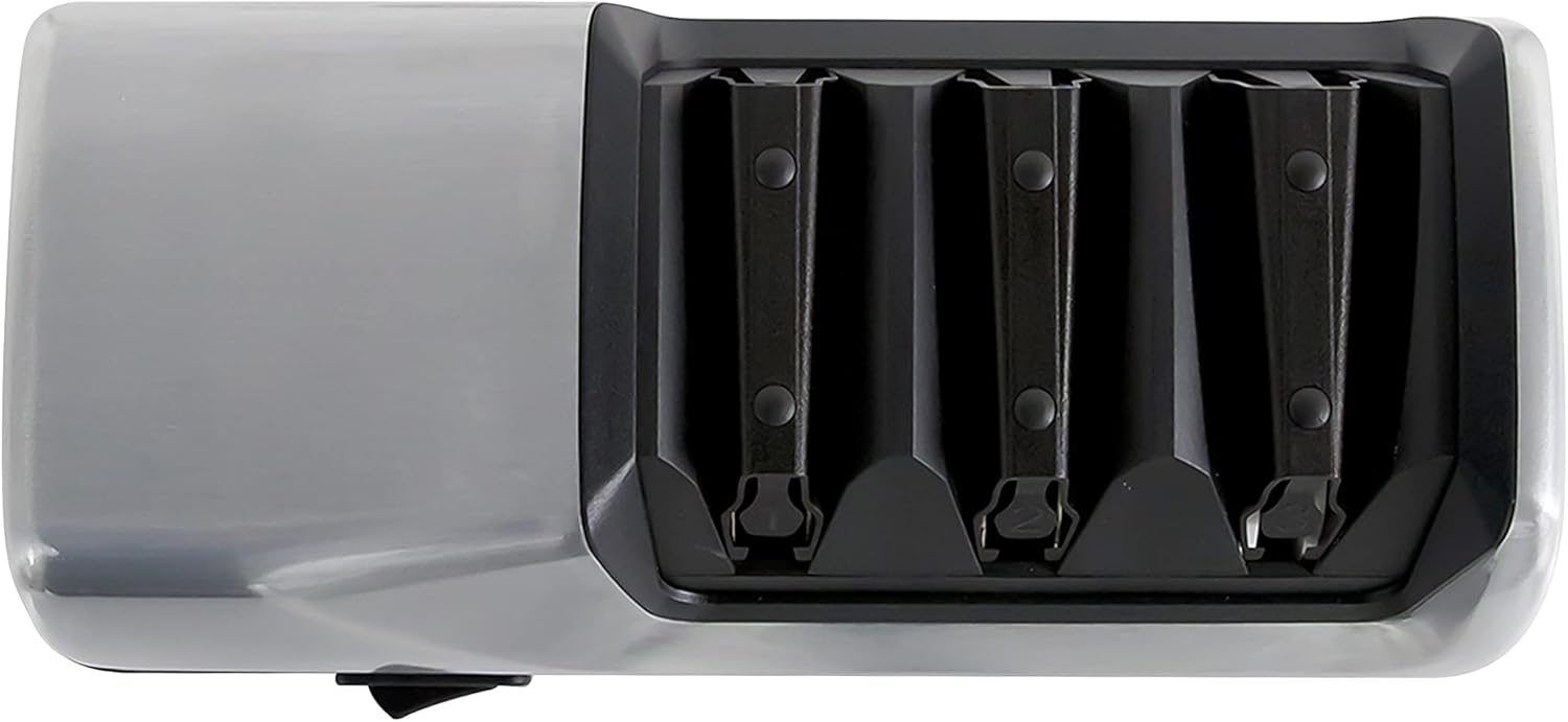 - THREE STAGES: 3-Stage EdgeSelect sharpening system for optimum versatility in providing the perfect edge for each cutting task. Stages 1 and 2 are plated with 100-percent diamond abrasives to sharpen and hone the edge and stage 3 uses a patented flexible abrasive system to polish and help prolong the life of serrated knives